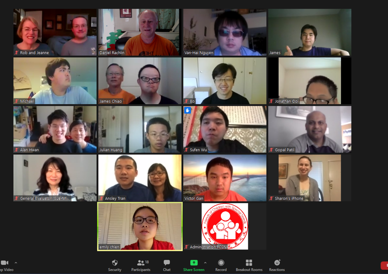 A pilot activity was started in Sept. of 2019 with the purpose of introducing the Toastmasters experience to FCSN individuals with special needs. We benefited greatly from the help of Alanโs mother Jennifer Li who had the foresight to obtain a popular timeslot during the Saturday evening family gatherings. Our first wave of volunteers comprised members of Saratoga Toastmasters. Other waves of volunteers have participated. This activity could not get off the ground without the efforts of these individuals.