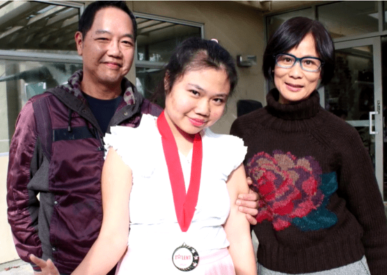 4Next is the Peopleโs Choice Award, which was presented by Kansen Chu, and the award went to Julian Huang and Alice Jen. They will also receive a trophy and $100. Now finally, the top 3 winners of the competition were announced by the remaining judges, in no particular order. Mimi Kwan announced the first winner, a piano performance by Julian Huang and Alice Jen.