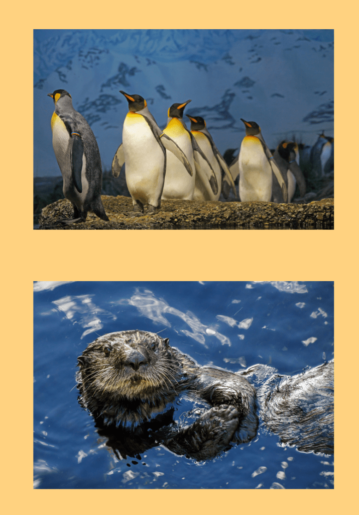 My favorite animals at the aquarium were penguins because they reminded me of my favorite movie โ Happy Feet. We spent about two hours at the aquarium and before we left the aquarium, my sister bought me a penguin stuff animal and a sea otter stuff animal. Afterwards, we had a big and delicious lunch at the seafood restaurant in the Old Fisherman Wharfโs.