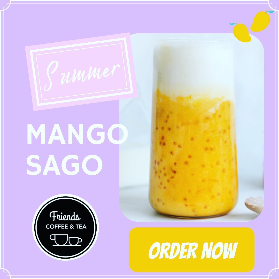 - Mango Sago: As its exotic name suggests, this drink is a popular summer time dessert in the tropics, mainly in Asia. Friends Coffee & Tea serves it with a special touch: combination of yummy, chewy pearl sagos and fresh, succulent mango slices. A must-try for this seasonal feast is here for everybody !
