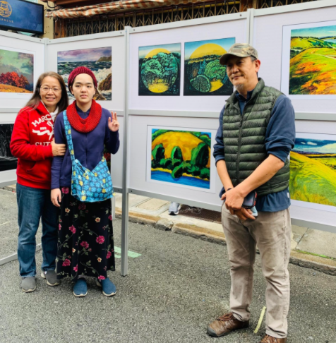 Recently, Iris was provided with the opportunity to exhibit her art at the “All Stars Rendezvous, Brighten Up Chinatown Recover” joint exhibition to celebrate the 2021 August Moon Festival. The theme for the show was “The Recovery from COVID-19”, so the committee emphasized the incorporation of colors to capture the difficulties of the pandemic. Using vibrant hues of green and yellow, Iris painted flowers and cacti depicting the vital resilience of natural life in the face of adversity. After seeing her artwork, Iris’s art teacher, Leo Pan, and the principal of Smart Learning Academy, Serene Liao, spurred her to submit her work. Along with 42 other Bay Area artists, Iris’ artwork was featured in the exhibition in San Francisco Chinatown.