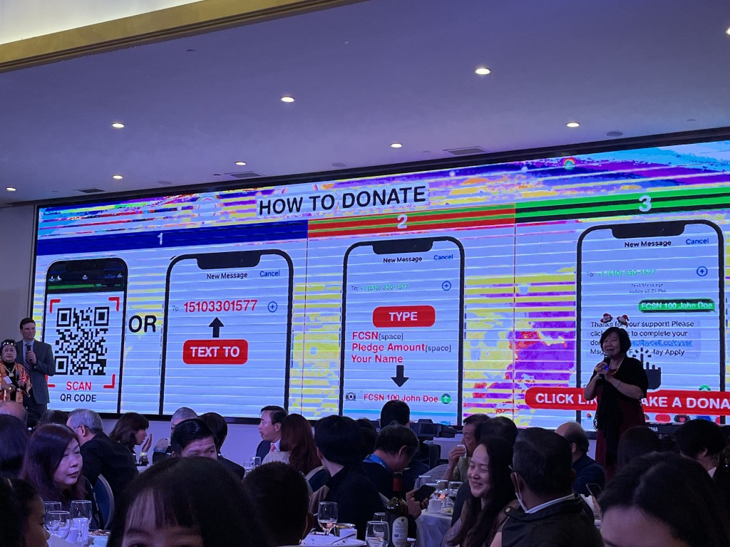 Anna Wang, co-founder of FCSN and currently Vice President of Local Programs and Community Relations, along with Gerrye Wong, a dedicated volunteer & CHCP co-founder, encouraged the audience to donate. On the big screen, the names of donors were shown alongside a large virtual thermometer indicating the growing donated amounts. Thanks to many generous hearts, the fundraising drive had raised over $400,000 by the event night. Anna Wang thanked attendees and families for their generosity and support and for being a huge part of Expanding Our Dream.