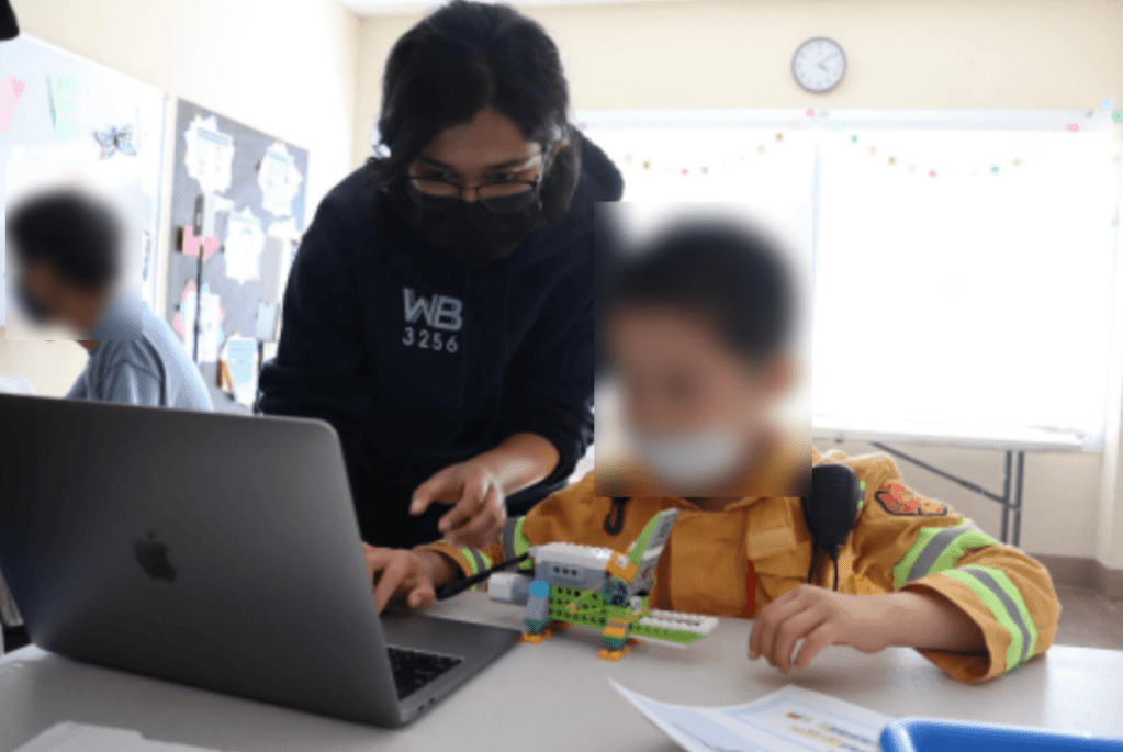 Team members Sanjana, Rhea, and Govind are providing key robotics education to FCSN through their in-person LEGO Robotics Workshop, known as WarriorBuild. Every week, students build a new robot and their own custom program. The WarriorBorgs consulted with a special needs educator to specifically tailor their classes to the tactile learning style of many neurodiverse students. The students follow the hands-on instruction of the instructors, who help them with the more difficult pieces. Projects like a grabber arm and LEGO animals brought a smile to the studentsโ faces; adding sound effects like a race car or jingle bells was also a group favorite. The kids also all made their own personal modifications to their robots โ one student made a โbattle crocodile,โ while another made a whole LEGO house and family, complete with a garden bed.