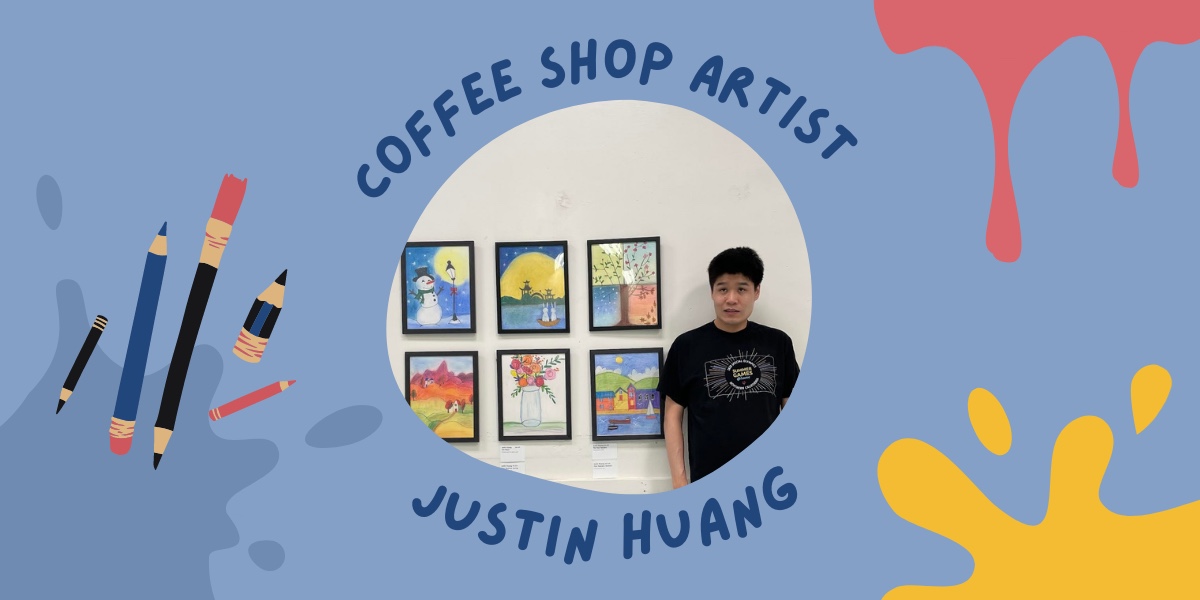 Meet Justin Huang, a gifted young artist who has transformed his passion for art into a meaningful endeavor as a coffee shop artist for FCSN’s café, Friends Coffee & Tea.
