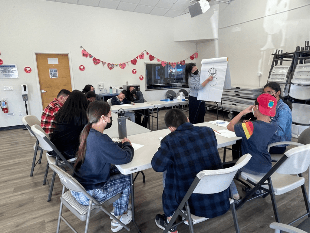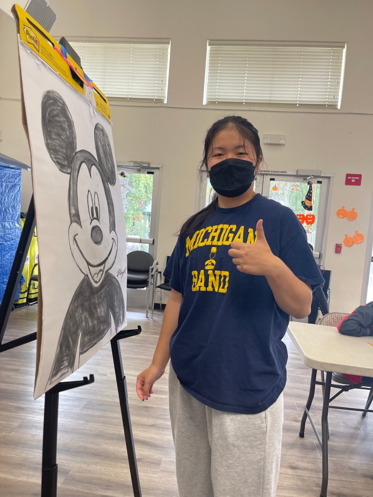 Riley finds the most meaningful part of teaching to be seeing the end results. “As an artist, sometimes you don’t trust the process,” she says. “Even in my own art, being able to see the finished product is the most satisfying part. Seeing that in other students who I have helped is even more gratifying.” She is also happy with how much progress the students have made throughout the semester. “There was this little boy who really wanted to draw Bruno from Encanto,” she recalls. Over the course of the semester, they never got to drawing that character due to the difficulty. On the last class, they finally decided to try. “It was a 3D cartoon, so I wasn’t sure if they were able to pull it off, but they did,” she says, proud of how much they have learned.