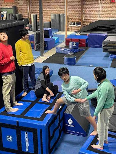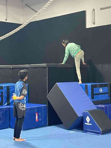 The workshop began with the teachers, Commander James Rhoe and Shadow Akhil Doddapaneni, setting up a course for the attendees. In a single file line,ย the participants began to parkour over blocks and traverse up a padded wall. There, they were able to freestyle and travel down any way they wanted. As they went through the course, the teachers gradually made it harder, moving the blocks further and further away from one another. As Helen, one of the parents onlooking the event, describes, โI like how the workshop allowed the kids to tailor the difficulty to their capabilities.โ