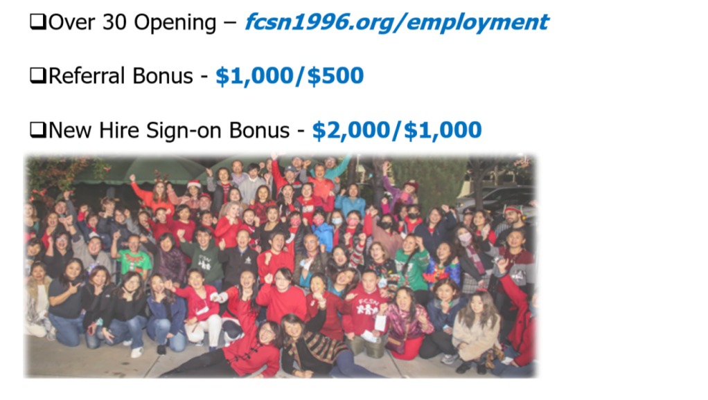 visit https://fcsn1996.org/employment/ for open positions, and send your resume to
