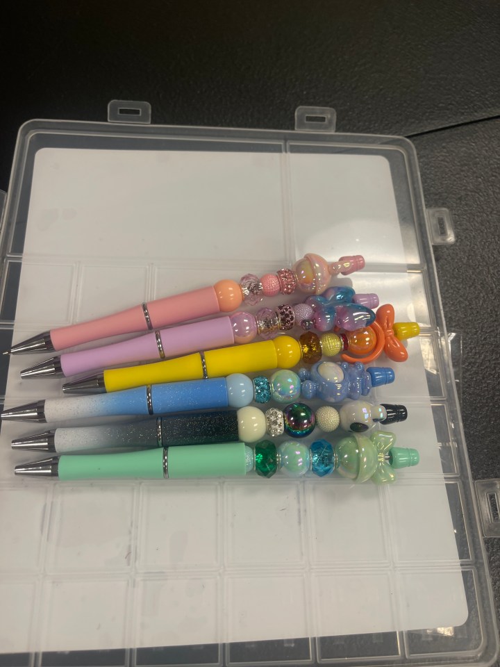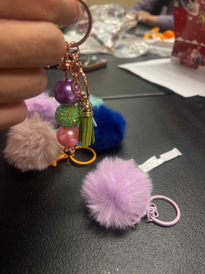 Last Saturday we had arts & crafts class in FCSN. We made pens. I took individual beads and connected them together. The pens were colorful. We also made key chains. I chose light pink, purple, and blue beads. The pens and key chains will be sold.