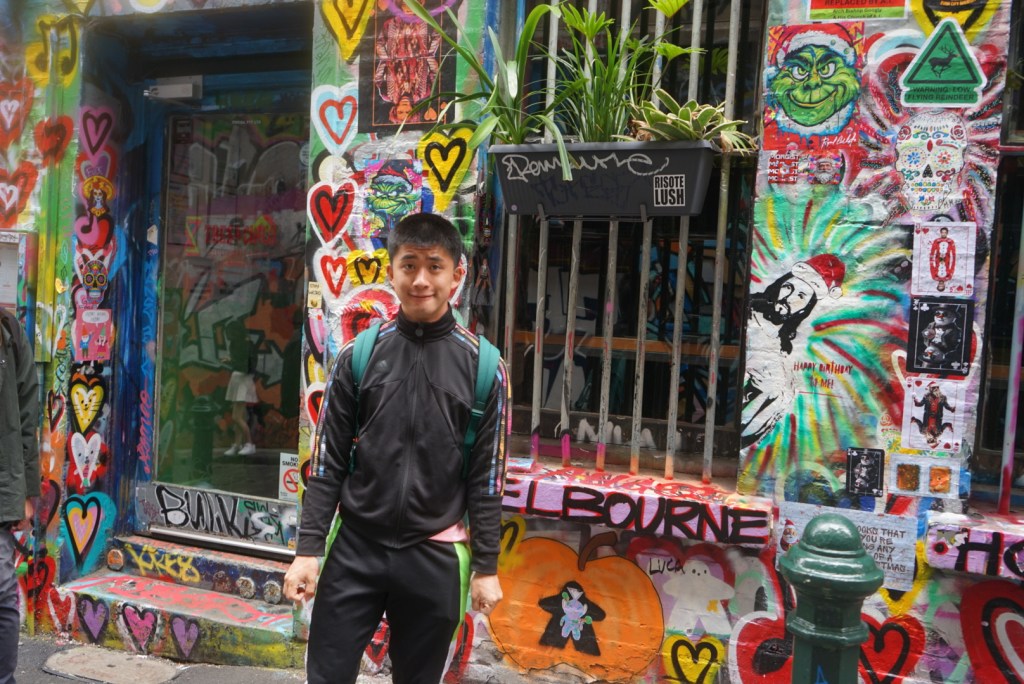 I stood in front of Hosier Lane. The street has many colorful drawings.