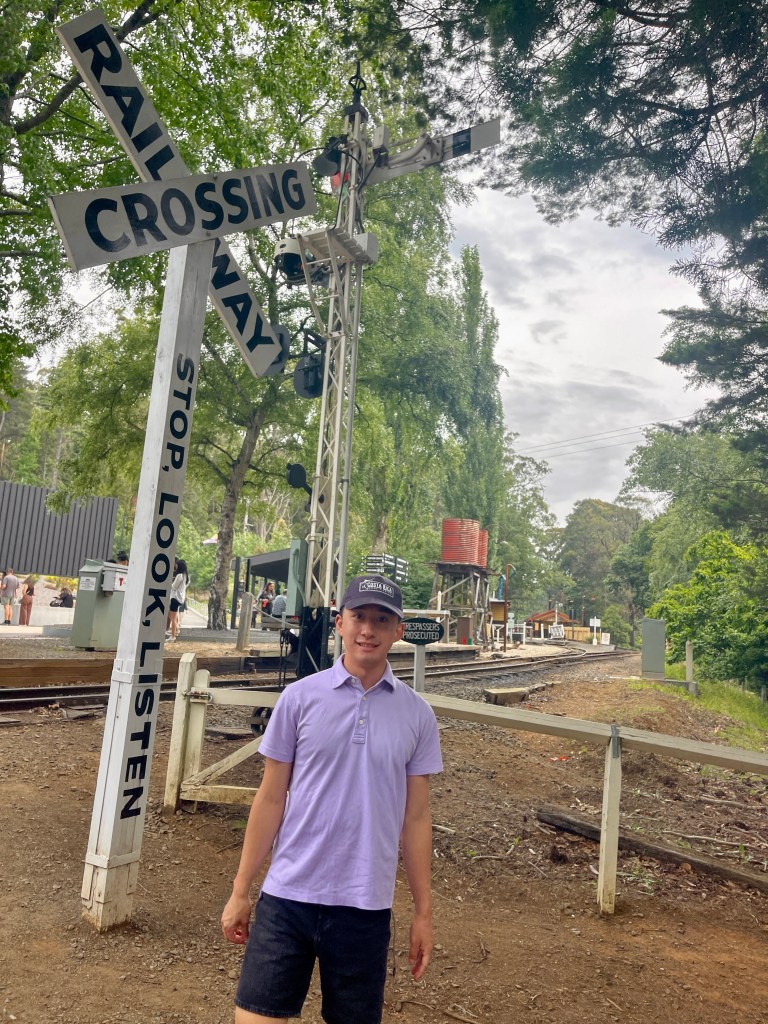 On Day 2 I rode the Puffing Billy Railway train. The train is very special. First the peopleβs legs are outside. Second, there is heritage steam on the railway. Third, the view was so beautiful. I saw rain forest, wooden bridges and mountains.
