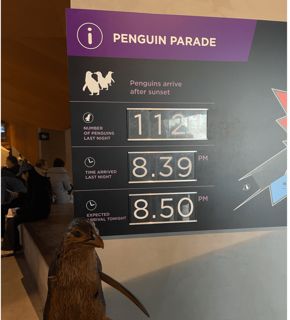 In the evening at 8:50pm I wore a heavy jacket to wait for the penguins to go from the ocean to the bushes. This is called a Penguin Parade. The penguins waddled together. They looked very small and cute.