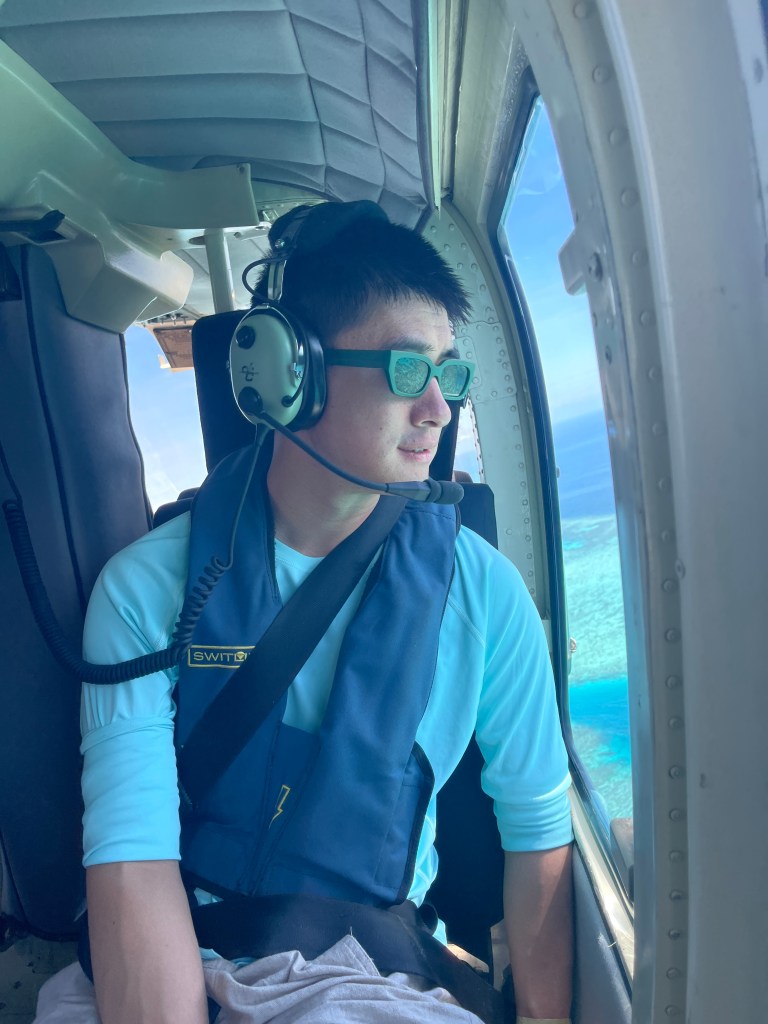 I took a small boat to the helicopter platform. This was my first time taking a helicopter. I felt very excited.