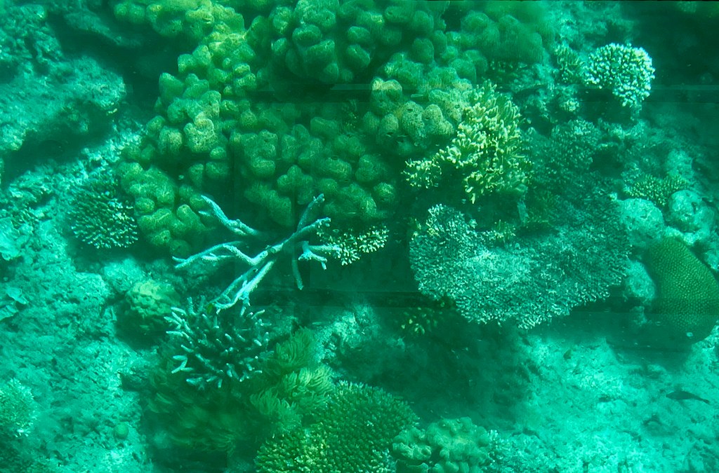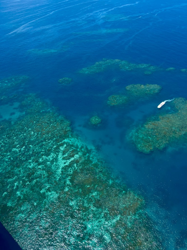 I saw lots of beautiful reefs. The reefs were blue. The reefs together are called the Great Barrier Reef.