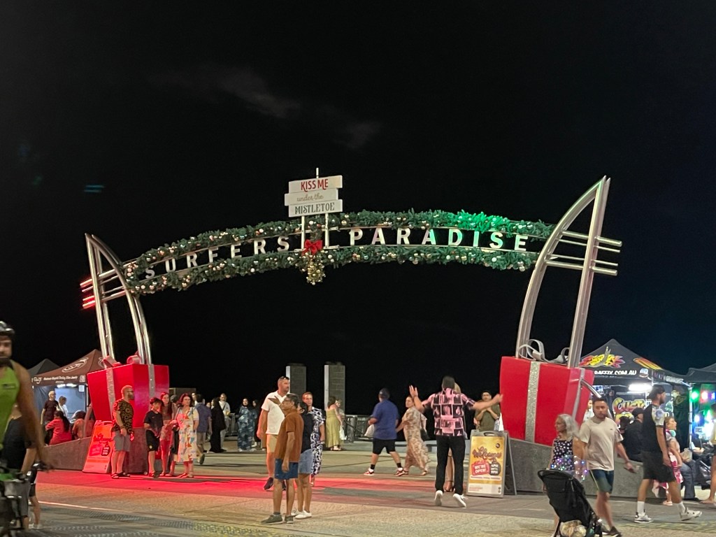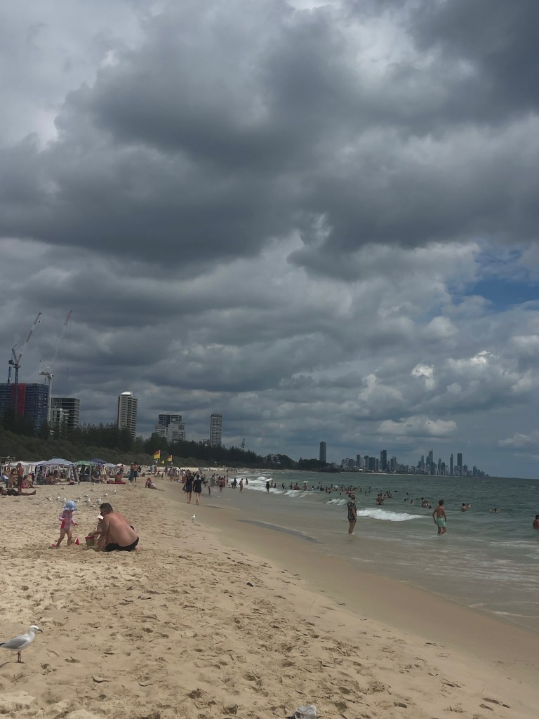 We went to Surfers Paradise Beach. I saw lots of people surfing. I want to learn how to surf too!Β