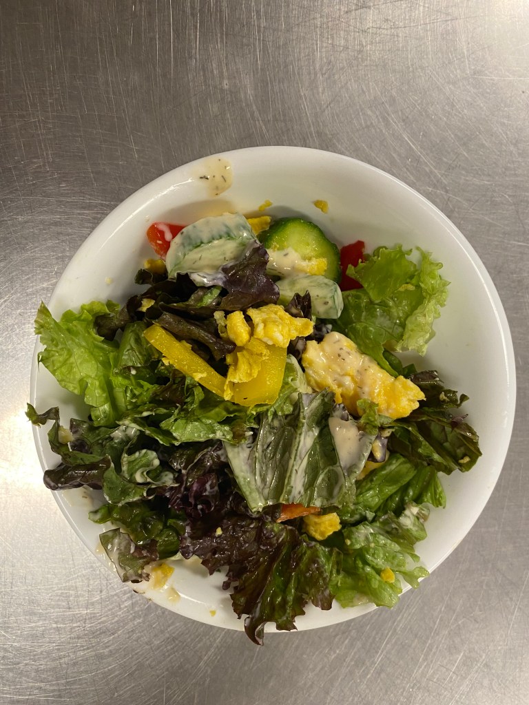 On Monday I made salad with bell peppers, egg, and cucumber.