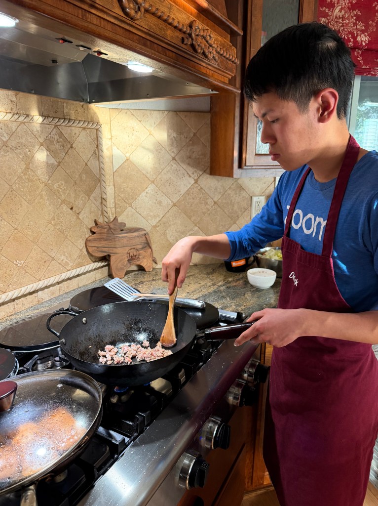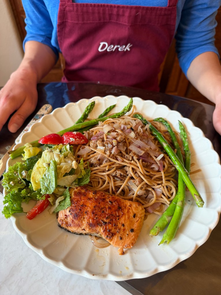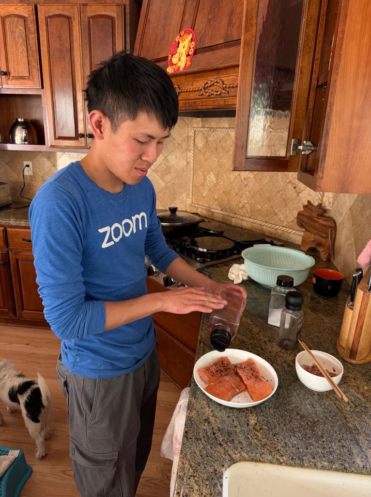 In the afternoon I marinated the salmon and stir fried the pork.