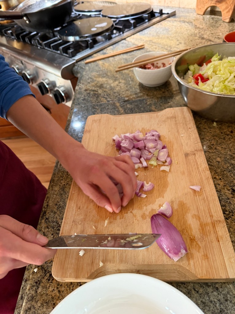 Mom took pictures of me preparing the meal and the plate of all the food.