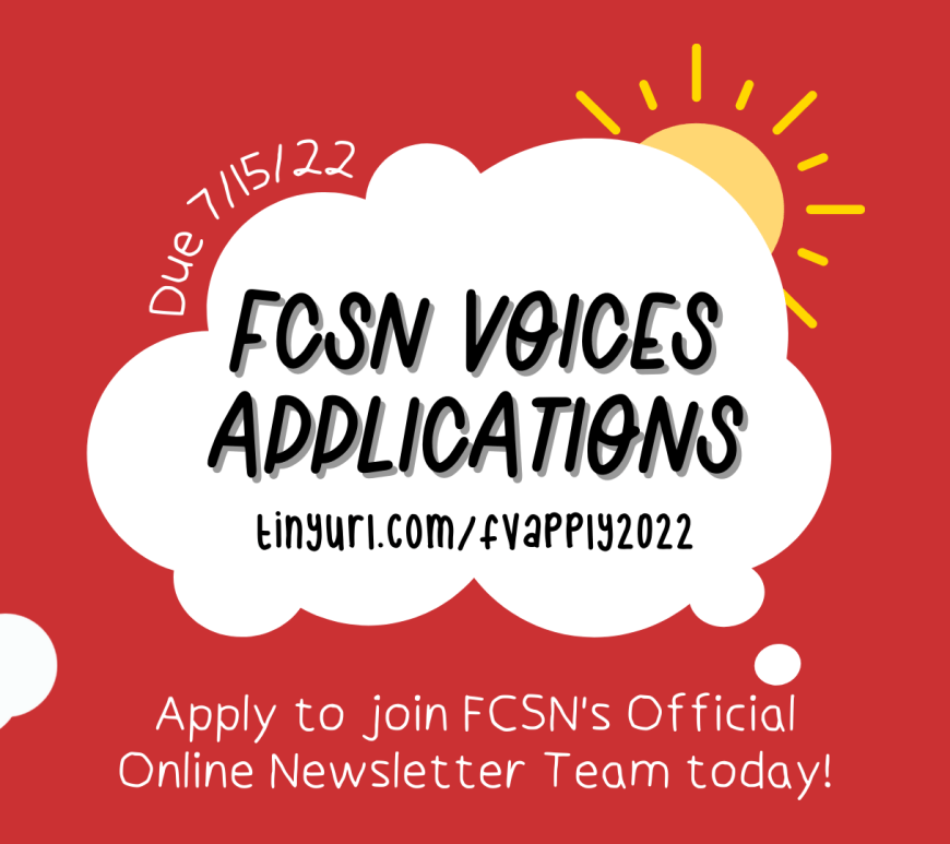We are looking for volunteers interested in being youth reporters and/or graphic designers/digital artists forย FCSN Voices! FCSN Voices is FCSNโ€™s online newsletter that expanded rapidly this past year as the team has worked to share FCSN stories online. Seeing your articles get published on FCSN Voices and the main FCSN website is an amazingly rewarding experience, and you will gain valuable communication, writing, teamwork, and outreach skills. There are also opportunities to receive the FCSN Voices Outstanding Contributor award for top reporters. Continue reading Join FCSN Voices Youth Reporters Team