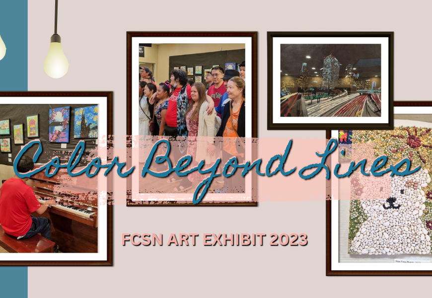 On a sunlit afternoon, vibrant energy among FCSN families filled the air with joy and warmth. Laughter, chatters, and smiles were all around accompanied by music playing in the background by FCSN’s talented musicians. Amidst this lively atmosphere, FCSN presented its 2nd art exhibition in 2023 following its first exhibition – Through Our Eyes – at the South Bay Center. The exhibition ran from August 25 to September 1 from 10am to 4pm with a special grand opening night on the first day with guest speakers, refreshments prepared by Friends’ coffee, and great turnouts with 183 guests, 50+ dedicated staff, and volunteers. Continue reading FCSN 2023 Art Exhibition: Color Beyond Lines