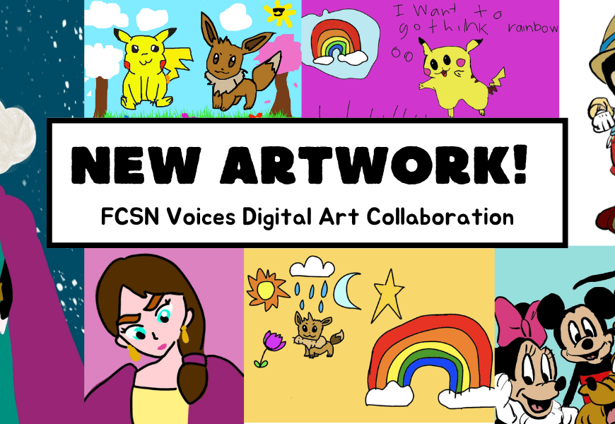 The FCSN Voices’ Digital Art Collaboration brings together special needs students and FCSN Voices’ own team of Graphic Artists through a series of weekly, virtual classes. During these classes, students and graphic artists explore the realm of digital art, producing an artwork(s) together by the end of the month. Joining our first batch of artwork that is displayed on our website is a second group, … Continue reading Digital Art Collaboration: New Artwork!
